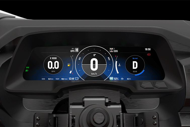 İhtiyacınız olan bilgiyi anlık olarak size sunar! Veriler: kilometre, gerçek zamanlı tork, beygir gücü, EPS modu, toplam kilometre, hız ve çok daha fazlası.